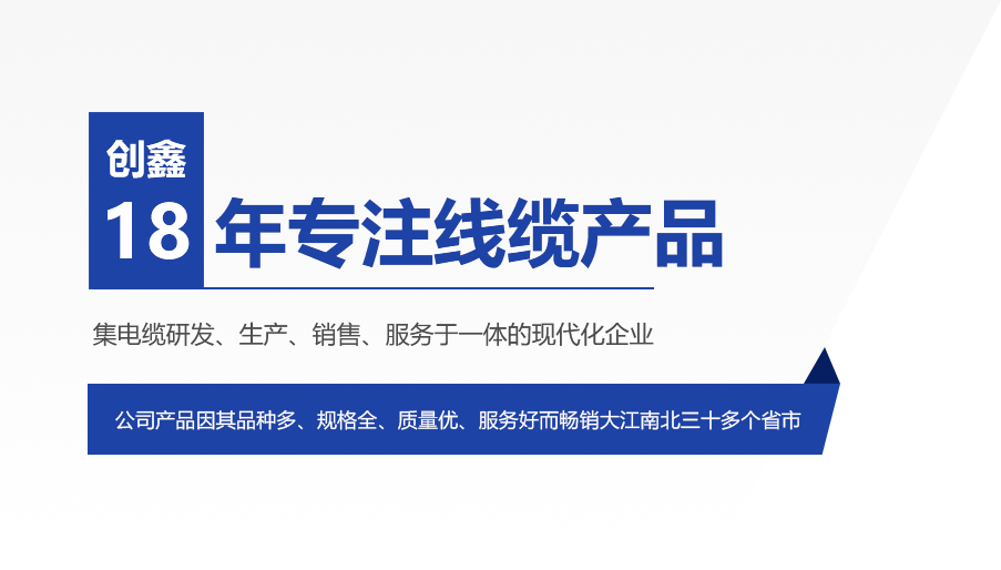 创鑫伟业线缆科技有限公司是一家集电线电缆研发、生产、销售、服务于一体的现代化企业。公司始建于2007年,注册资金3.19亿元,占地面积66000平方米,在编人员300余名,年产值9亿元左右,由高级管理人员、专业技术人员、高素质熟练工人组成了独具特色专业化的管理、生产团队。