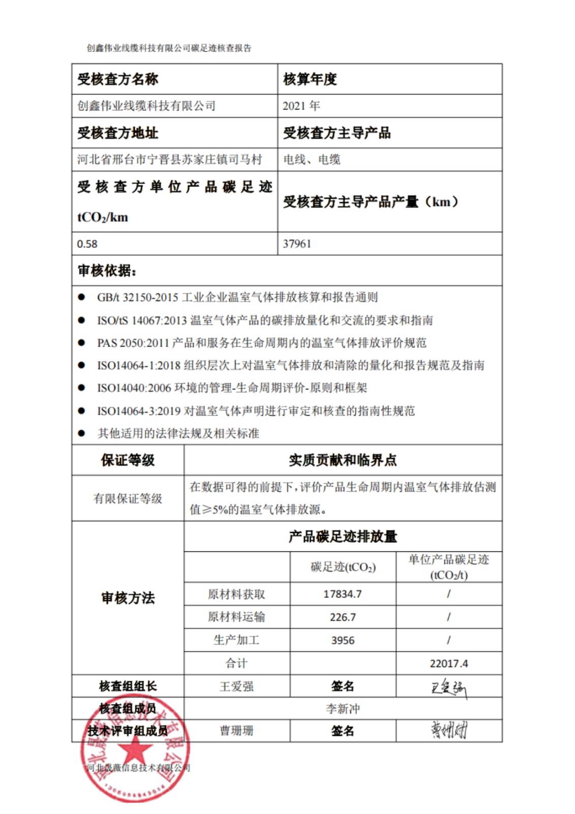 2021年产品碳足迹核查报告公示