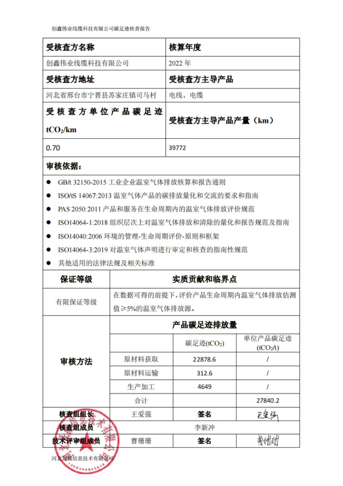 2022年产品碳足迹核查报告公示
